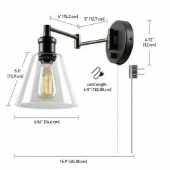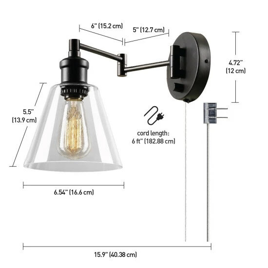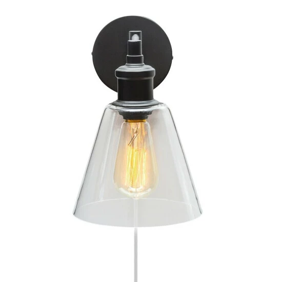 Fashioned after vintage inspired lighting this 1-Light Plug-In or Hardwire Industrial Wall Light adds a rustic industrial feel to any room. Leave it as a plug-in to move it easily and create different looks in different rooms or hardwire it to your wall for a long lasting look. The clear glass shade and exposed bulb easily create different lighting ambiance and moods when adding bulbs of different brightness.