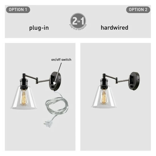 - PLUG-IN OR HARDWIRE CAPABILITY: the innovative 2-in-1 design allows you to install your wall light as a plug-in so you can place it anywhere in your home or use the hardwire option to create a sleek cordless lookΒ