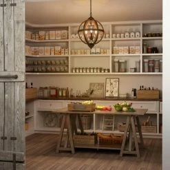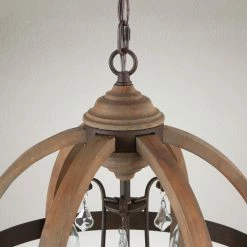 - Farmhouse Style: A wooden globe surrounding a metal scroll frame accented with crystals adds a glamorous farmhouse style.