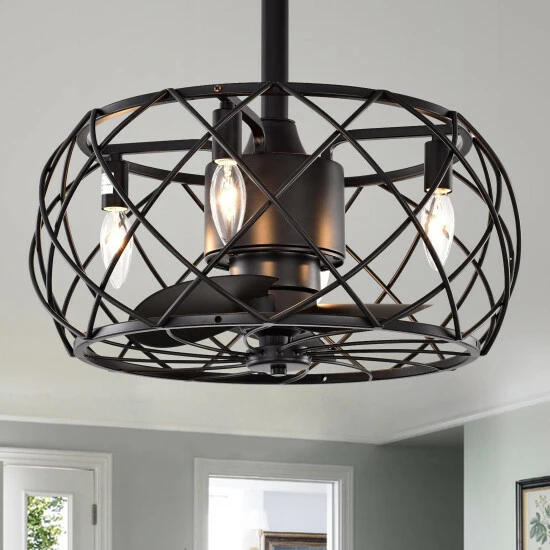 A blend of industrial design and elegant lines, this Abrar fandelier from Carbon Loft will add comfort and style to your decor. The piece features a small, three-blade fan, mounted inside a round cage with domed sides, all in a sleek, matte black finish. The four lights provide ample, multi-directional lighting, and the included remote allows you to easily control the three-speed fan for the ideal level of cooling.