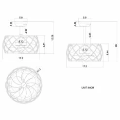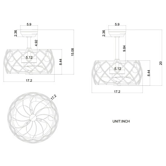 - Overall: 17.2 inches in diameter x 15.08 – 20 inches high