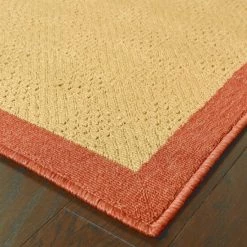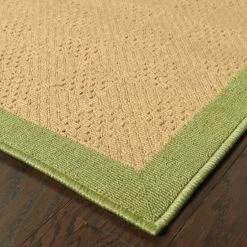 Enjoy the subtle yet elegant design of this two-tone area rug from Carbon Loft. Crafted from 100-percent heat-set polypropylene, this durable rug is great for use indoors or outdoors. Its simple solid beige pattern paired with contrasting border creates a timeless look.