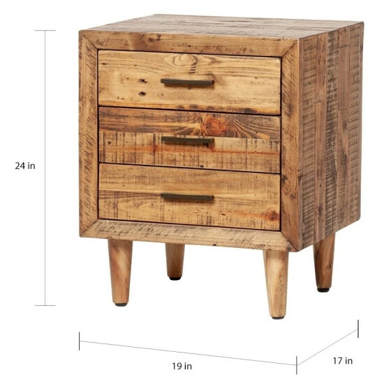 Infuse rustic grace and homespun beauty into your decor with the simple elegance of this three-drawer nightstand. The reclaimed pine wood showcases wood knots, small cracks, and natural wood grain for a touch of rugged beauty you will be sure to adore.