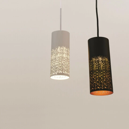 With an alluring decorative cylinder, this pendant is an artful addition to your space. The pendant is suspended with an 8 foot adjustable cord. The fixture can be used over receptions desks, restaurants, and in public spaces