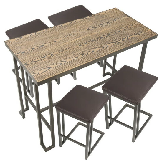 - Includes four counter stools and one counter table