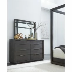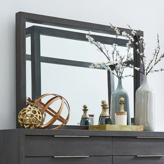 Complete your bedroom with this sleek and striking mirror. With bold proportions, crisp lines, and a weathered finish, this mirror is a handsome addition to bedroom decor.