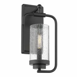 Sleek and graceful slender tubes defy gravity to hold tall cylindrical glass shades atop metal cups. With its mid-century modern aesthetic and two finish options, the series was created with a variety of interiors in mind. Choose between a stately plated aged brass finish, or a striking matte black. When illuminated, the clear seeded glass softly diffuses the light cast by the slim candelabras for a radiant look. Wall sconces are popularly used in halls, stairways, entries and foyers. The soft light of this fixture is perfect for accent lighting.