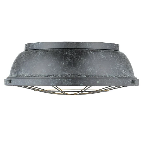 Embrace industrial style with this flush mounted light that sports a lightly weathered finish for a used, vintage look. This piece is made from steel materials for a long life.