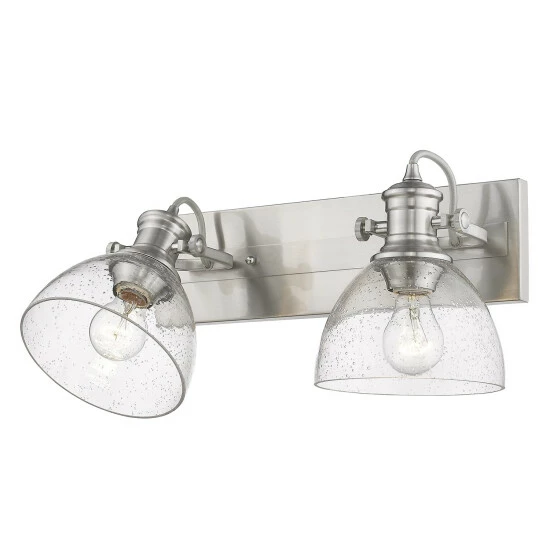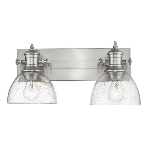 The transitional style is a marriage of traditional silhouettes with modern finishes. This 2 light bath vanity is UL approved damp locations
