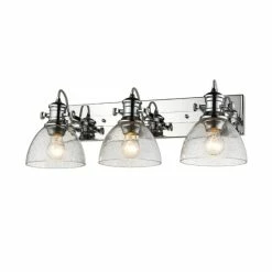 Create a sophisticated look with this chic, transitional vanity fixture. The gracefully curved glass shade gently diffuses the light, and the size is great for bedrooms or small studies.