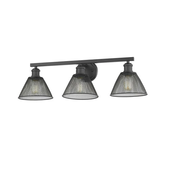 This three-light bath vanity has a cool, industrial design that will be the finishing touch in any bathroom especially those with modern and transitional styles. Available in two finishes, the smooth black finish will add a sleek look to a bathroom without cutting back on the amount of light. This fixture is safely rated for all damp locations, and is easy for anyone to install since all mounting hardware is included. This fixture will bring out all refined details in a bathroom because the durable and elegant construction of this bath light is fashioned with beautiful details itself.