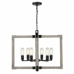Impart majestic lighting into your home with this six-light chandelier. This fixture’s cedar wood frame in a lightly distressed finish gives off a rustic appearance, while dark matte black steel introduces an industrial element.