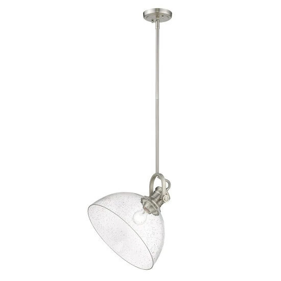 Cast a bright glow over your work surfaces with this down-light pendant that uses a single 100-watt bulb. Boasting traditional design and a modern finish, this steel fixture blends effortlessly with transitional home decors.
