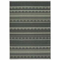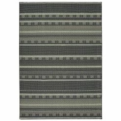 Enrich your home with the exotic elegance of this black and ivory patterned rug. Machine-made from stain-resistant polypropylene, this vibrant and lively rug offers durability and delightful style wherever it is placed. To maintain the look and feel of your rug, blot spills immediately with a clean white cloth, vacuum regularly and spot clean using a mild soap made for the specific rug fiber. Professionally clean occasionally or when heavily soiled.