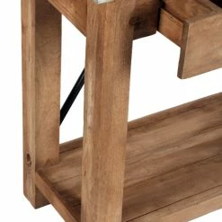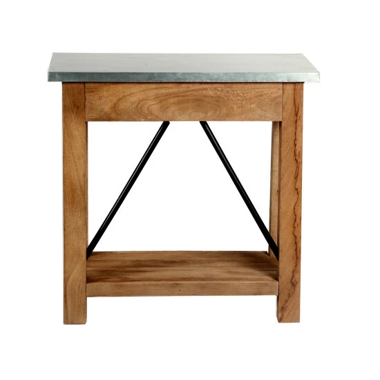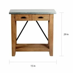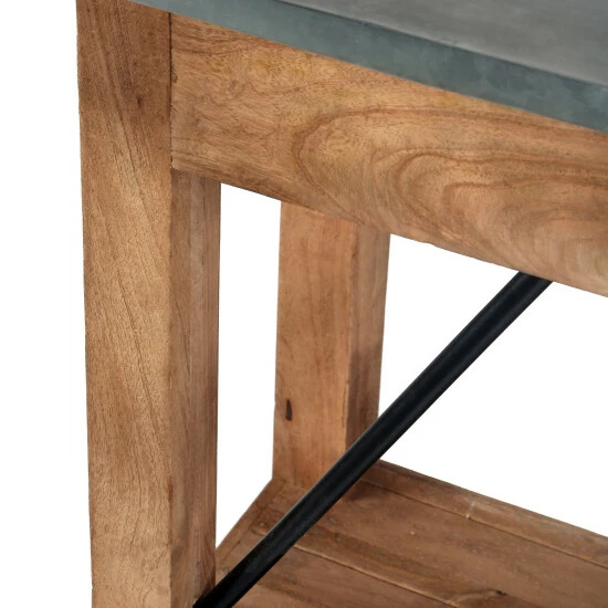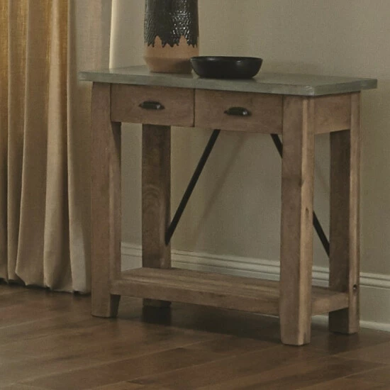 Warm and rustic with just a hint of industrial edge, this Blitz console table from Carbon Loft will add the perfect touch of style to your living space. The table features a sturdy wood frame with straight legs, two drawers, and a plank style shelf, providing plenty of room for storage and display. A zinc galvanized steel top adds a cool, sleek touch to this unique and eye-catching table.