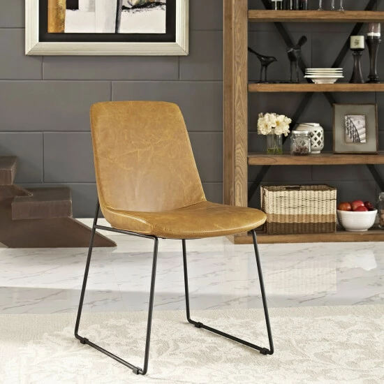 Welcome guests with a reception chair of dignified appeal. Founded on the principles of organic design, the Bode guest chair delivers a beautiful first impression. Outfitted with a steel sled base and floor glides, the Bode comes finely stitched in padded faux leather. When it comes to finishing off your home or office, choose a sturdy and uncomplicated guest chair that exceeds expectations.