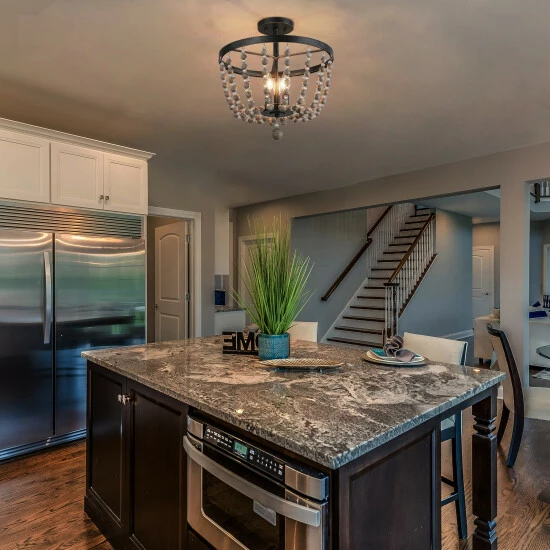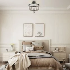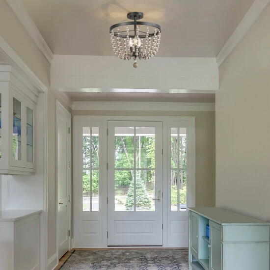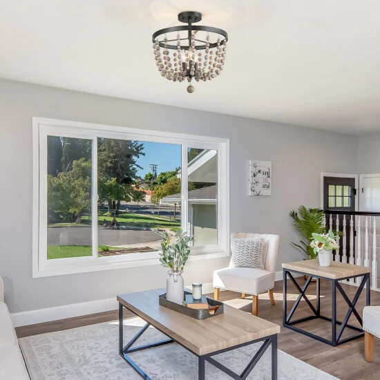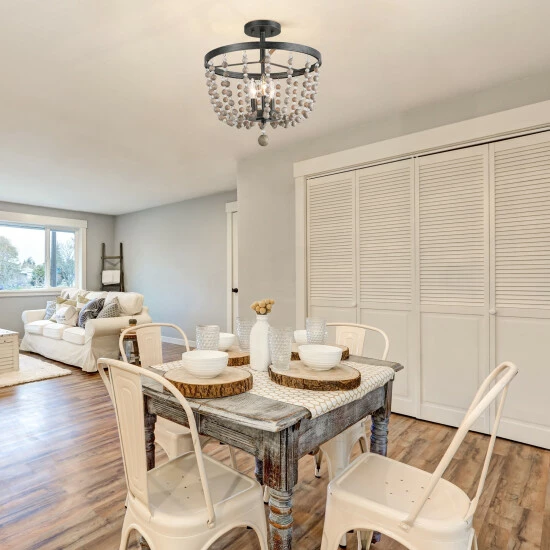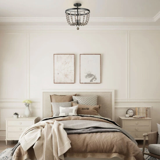 Lighten up your space with charming Bohemian style with the Dathan flush-mount fixture from Carbon Loft. This ceiling light is made of metal with a dark bronze finish, complemented by hanging wood bead accents. The wood beads are hand-carved and feature a distressed finish for a rustic flair. This fixture is especially perfect for living room, kitchen island, bedroom, foyer and any other places you like.Β