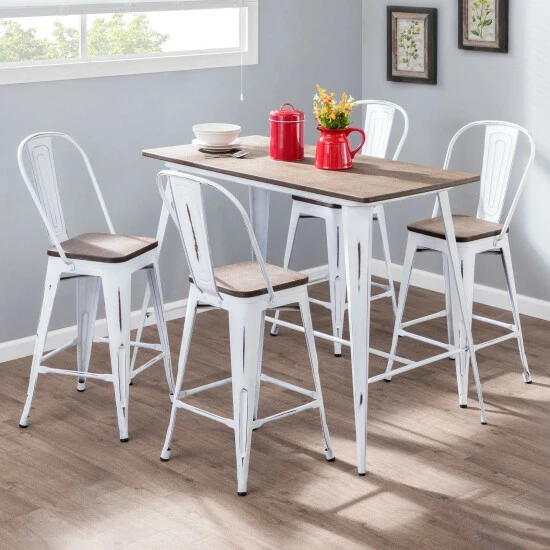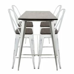 Rife with vintage charm and industrial flair, this table and stool set is a distinctive addition to decor. Designed for style and durability, this counter height set is a lasting and pristine element you are sure to enjoy in your home.Β