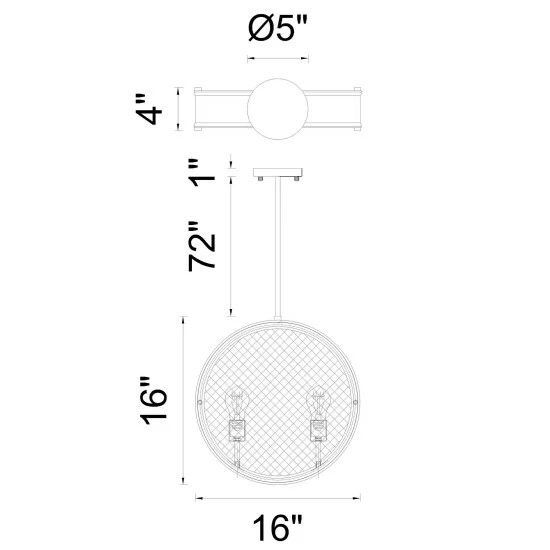 Dimensions: H 16″ x W 16″ x D 4″ – Black Finish – Requires 2 E26 Bulbs Max 60 W (Sold Separately) – Comes with 72″ of rod – One year warranty against manufacturers defect.