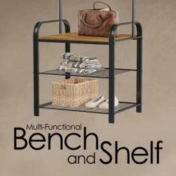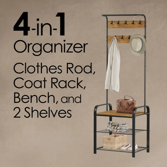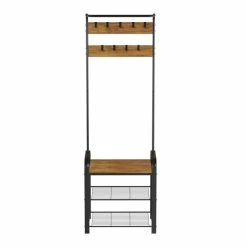 Keep your entryway neat, tidy, and charming with this coat rack. The sturdy design bears up plenty of your hats, scarves, coats, and shoes for optimum organization and reliable use.