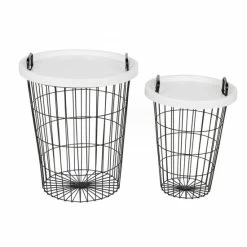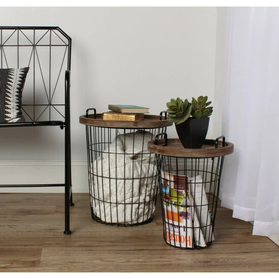 Easily access items while storing them in chic style with these nesting accent tables from Carbon Loft. Each table is crafted from metal with a wood top that can be removed to keep items inside.