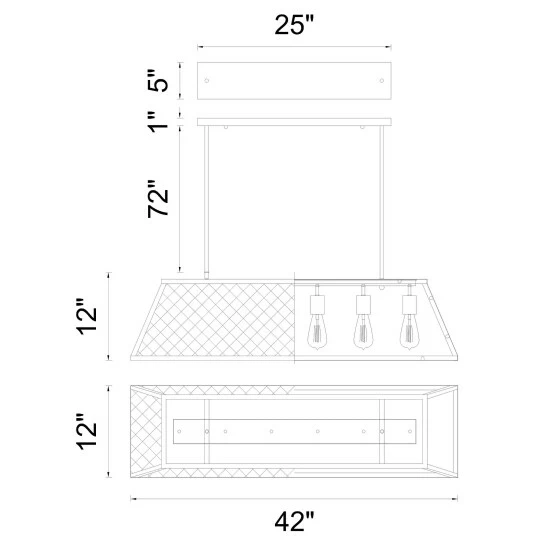 Dimensions: H 12″ x W 42″ x D 12″ – Black Finish – Requires 6 E26 Bulbs Max 60 W (Sold Separately) – Comes with 72″ of rod – One year warranty against manufacturers defect.