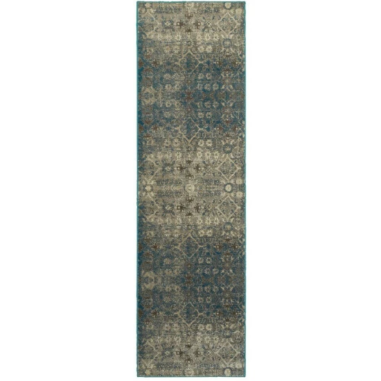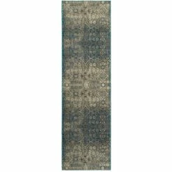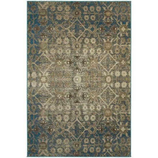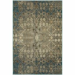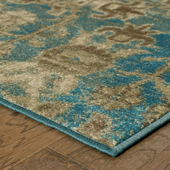Intricate and elegant, this beautiful area rug invites warmth and timeless beauty wherever it is placed. Machine-woven from durable, stain-resistant polypropylene, this area rug showcases a distressed Oriental pattern in cool shades of blue and beige.