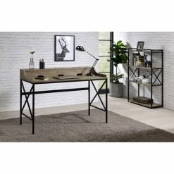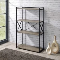 Update your office, bedroom, any space with this industrial style bookcase offering spacious shelves and a powder coated iron frame for stability. The grey finished wooden shelves are perfect for storage or display while the sturdy iron frame features a stylish X-motif on the sides and adjustable floor glides to ensure a level surface.