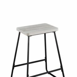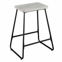 These sleek counter stools radiate a minimalist style while adding comfortable seating to your kitchen or dining space. The weathered driftwood seat sits atop a sturdy iron sled-style frame finished in black powder coating. Two stretchers add strength and a comfy footrest.