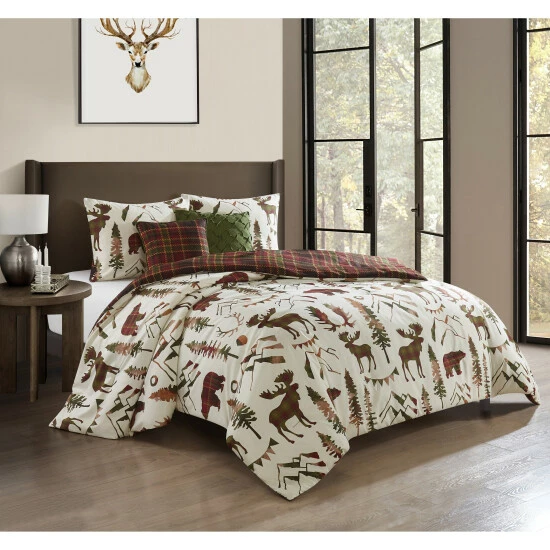 This elegant, lodge-inspired comforter set features rustic western patterns, grizzly bears, and moose roaming the great American forests. Perfect for the holiday season, this five-piece ensemble is certain to become a personal favorite of yours.
