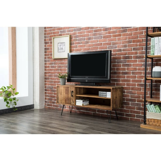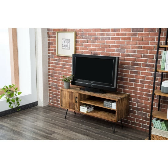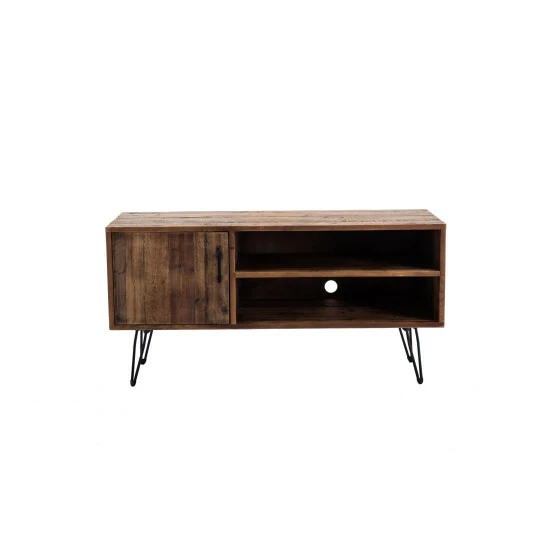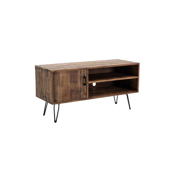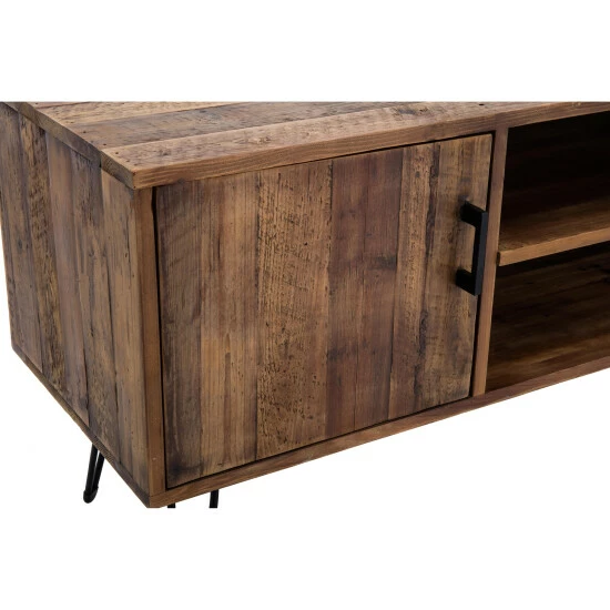 Enjoy the sleek, mid-century modern appeal of the Carbon Loft Carver TV Stand. Constructed from reclaimed fir with a stunning natural finish that allows the beautiful, unique characteristics of the wood to shine through, this TV stand stands on top of black iron hairpin legs.