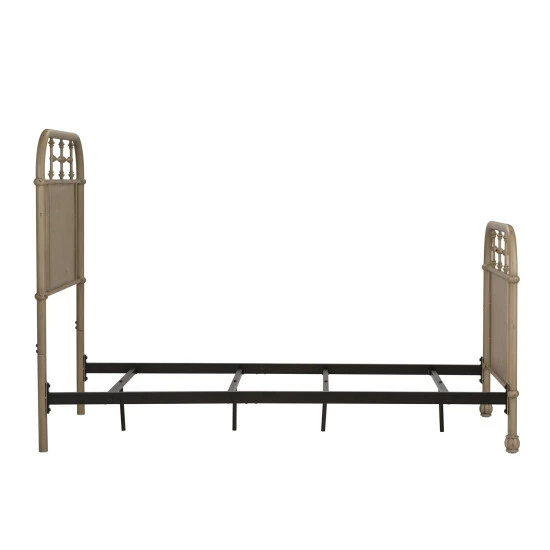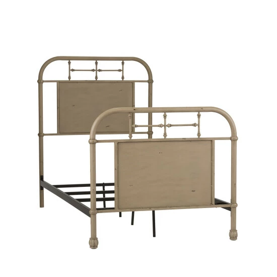 Deliver stunning vintage flair to your bedroom with this fun and fabulous bed. The distinctive design and color offers a unique designer look, transforming a space into a swanky urban environment. Β Add a unique look to your home with the Vintage Series Twin Metal Bed. Crafted of metal tube and finished in a beautiful antique cream with wear thru. The headboard and footboard feature a softly shaped cap rail and turned metal spindles highlighting a center panel. The metal side rails and bed slats are finished in the antique cream with wear thru. The Vintage Series headboard will work with a metal bed frame making it perfect in small spaces and any decor from cottage to farmhouse.