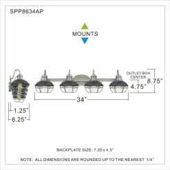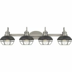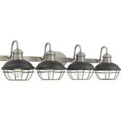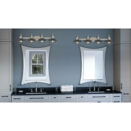 The industrial style of the Sandpiper collection will instantly elevate your bathroom. This fixture is finished in an Antique Polished Nickel and complemented with Distressed Iron. The metal cage shades add an interesting design element without sacrificing light. All Sandpiper bath fixtures can be mounted as uplights or downlights.