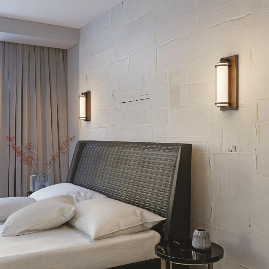 Bring a sleek, modern element to your home with this luminous wall sconce. The walnut and bronze finish is well suited to industrial decor schemes, and the glass shade allows for wonderful illumination.