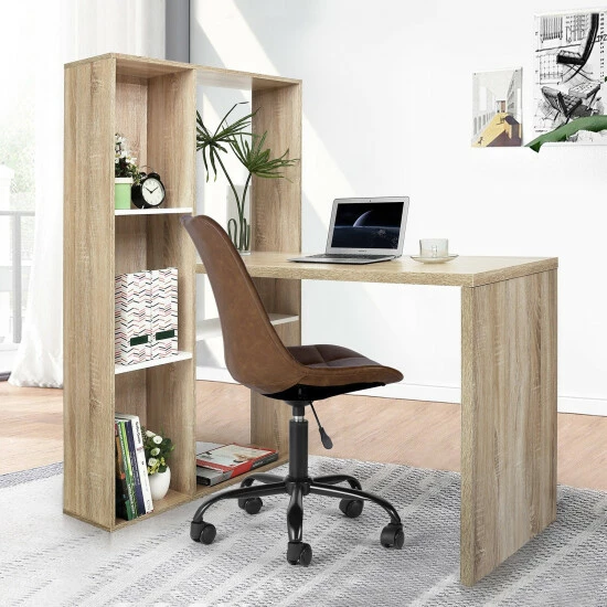 Keep all your necessities close at hand with this crisp and attractive wooden desk combination. The storage unit features open compartments of various sizes to fit all your office supplies. When you need space to create and focus on playing games, writing, drawing, or working, this computer desk will be there for you.