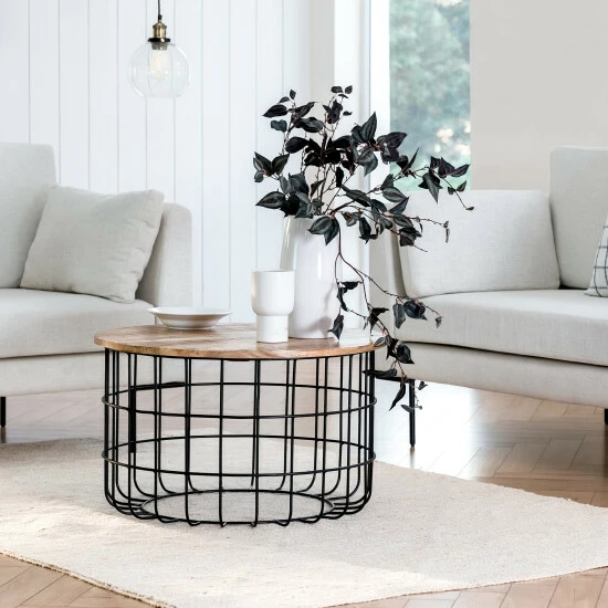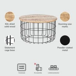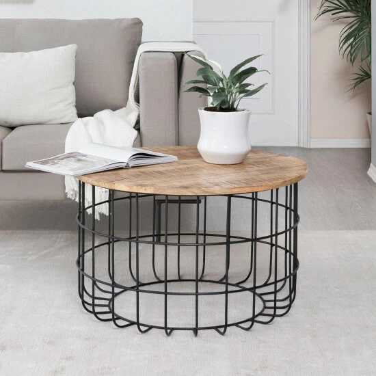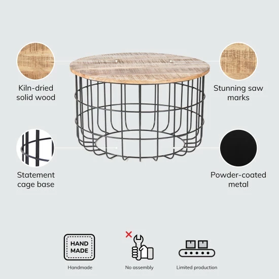 Get your hands on our Industrial coffee table- it’s so statement! With rustic saw marks, a solid wood top, and stunning metal cage base, this piece is everything you need for conversations and coffee. Want more? It’s crafted by skilled artisans, so it has that handcrafted quality we love!Β