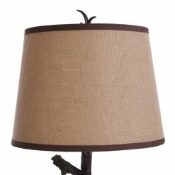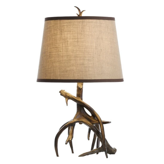 Illuminate your home with this unique antler table lamp. This lamp features a realistic poly resin antler design with a round burlap fabric shade. The lamp features a 3-way switch and is perfect for any table in your home.