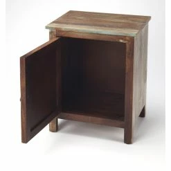 Whether sidled up beside your favorite chair, or acting as a night stand, this accent cabinet Is always a stylish stage for your most cherish mementos or alarm clock. Features ample interior storage, a distressed finish and iron hardware.