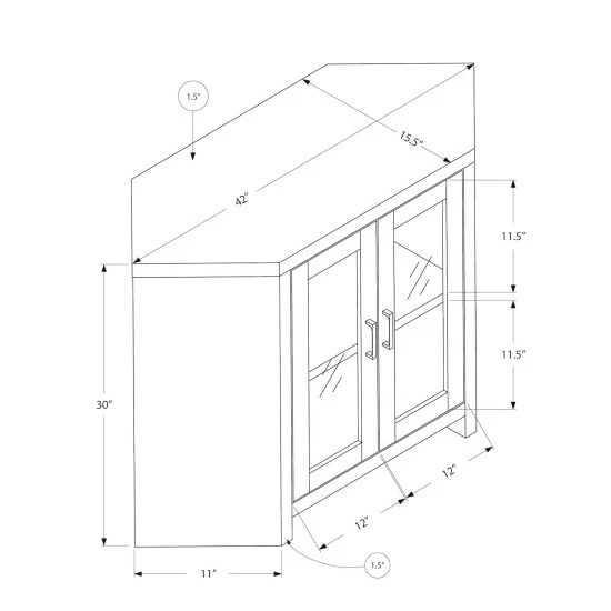 - 42 inches wide x 15.5 inches deep x 30 inches high