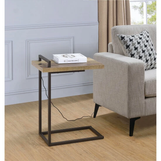 Artful, contemporary style and modern convenience are the hallmarks of this quaint little end table. The sleek design rests perfectly at the end of sofas and is equipped with a USB port for charging phones and tablets.