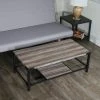 - Made of laminated particleboard and powder-coated metal hairpin legs