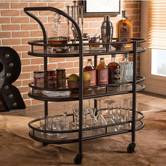 - Rustic industrial style kitchen bar serving wine cart