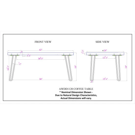 Mid-century meets Modern Industrial with these Natural Live Edge table tops and hairpin metal legs. Each tabletop is unique; no two tops will be exactly alike. Constructed of natural acacia wood. Each of our live edge products includes nylon floor protectors. The knots and cracks add to the wood’s character. A clear natural finish enhances the beautiful features in each piece of wood.