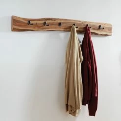 Infuse a rustic and artful element into your entryway with this bench and coat rack hook set. Constructed of natural acacia wood, a clear natural finish embraces the beautiful features of each piece of wood. The knots and cracks add to the wood’s character.Β