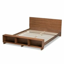 Add warmth and character to your bedroom decor with this Dehaney platform bed from Carbon Loft. The stylish bed is crafted from rubberwood and MDF and features a stylish slatted headboard and a footboard with bookshelves, adding needed storage to smaller spaces. The platform base with support slats eliminates the need for a box spring, making this bed as practical as it is attractive.