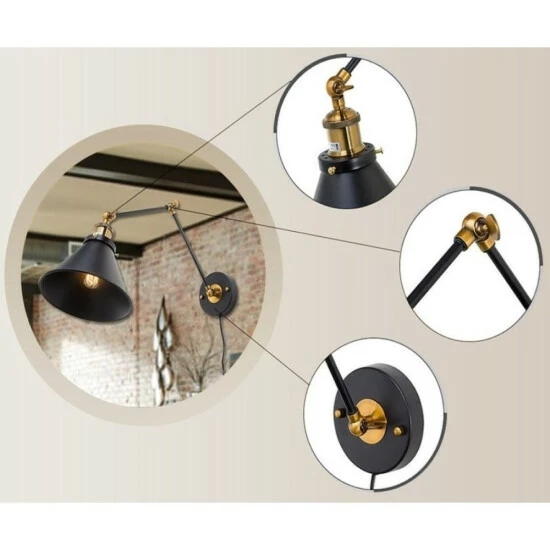- Patent swing arm and brass joint make it easy to adjust up and down (not side to side) and direct light wherever you need the most.