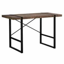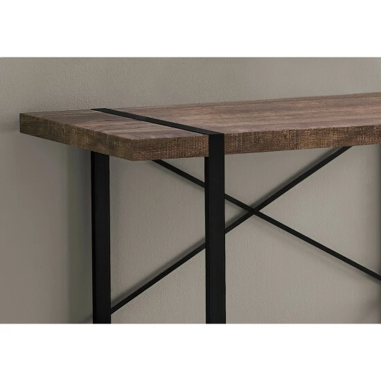 The unique and edgy look of wrapping metal tube legs offer a striking industrial look to your home office or work space. Combine the edgy look of the metal with a warm brown reclaimed wood-look finish and it can easily fit into any contemporary or modern farmhouse style decor. Just the right size for small spaces, this desk can hold a laptop and some office essentials within easy reach.