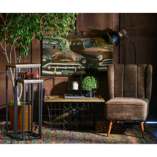 Flaunting a crisp iron silhouette finished in antique brushed goldtone lacquer, this pair of nesting plant stand side tables. These can used to display the best of the decor or be coupled with amazing plants atop their natural wood square surfaces. Their nesting design makes for a coordinated look that’s easy to rock.