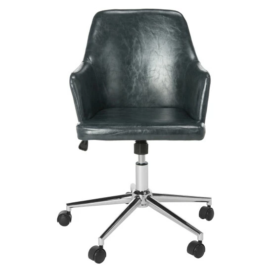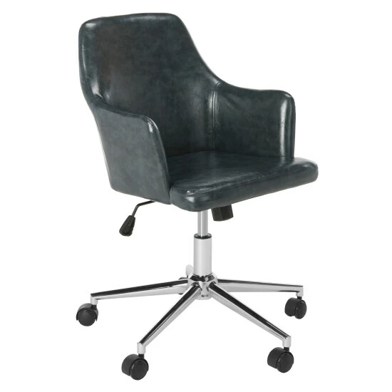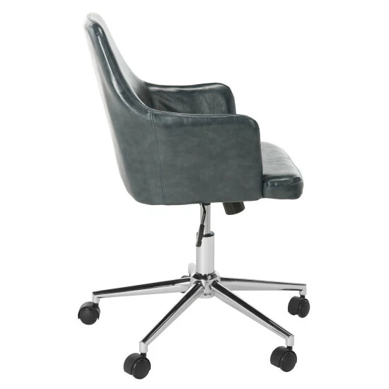 Create a classic look in your home office with this sleek and sumptuous chair. Designed for versatility, it blends the comfort of the classic armchair with sleek chrome legs and faux dark grey leather for easy movement and maintenance.