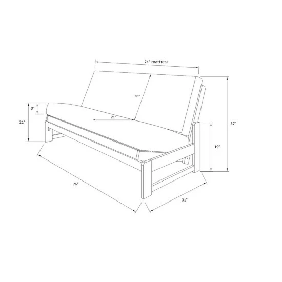 - Seat: 19 inches high x 21 inches deep x 74 inches wide